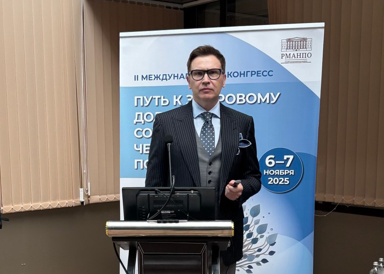 На торжественном открытии II Международного конгресса «Путь к здоровому долголетию. Сохранение человеческого потенциала», прошедшем в Москве 6 ноября 2025 года, профессор Алексей Сергеевич Рязанов представил доклад «Сердечно-сосудистое благополучие как один из ключевых аспектов в борьбе за активное долголетие».